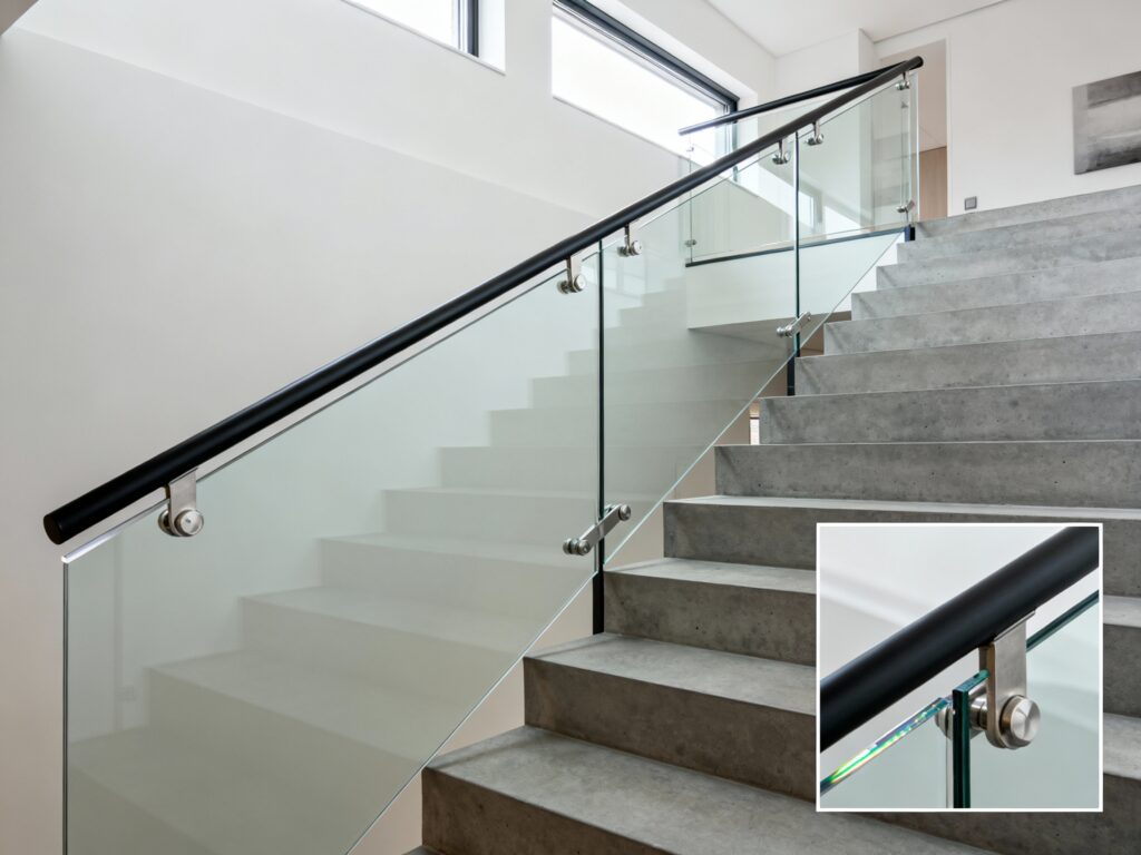 Garde-corps / balustrades ; traitements du verre (anti-calcaire, revêtements spécialisés)